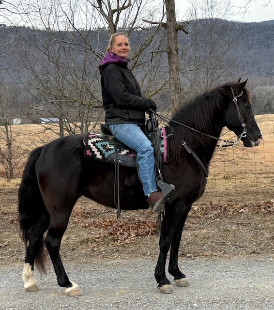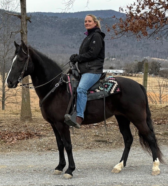 year old registered TWHBEA Black mare. She stands 15.0H with a
