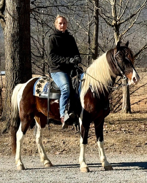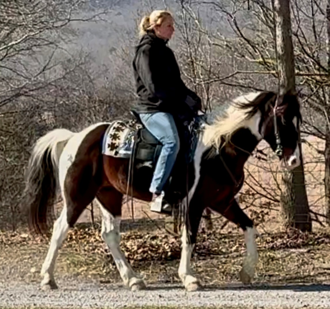 tobiano TWH gelding that stands 14.2H. He is currently grade,